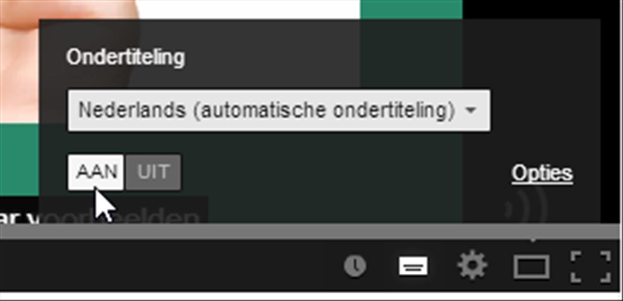 Wanneer de maker van de video geen ondertiteling heeft aangeleverd (foei!), dan zorgt YouTube voor automatische ondertiteling: klik op 'aan'. | |